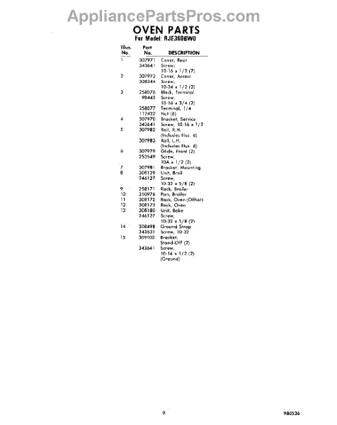 Parts for Whirlpool RJE360BW0: 09 - Section Parts