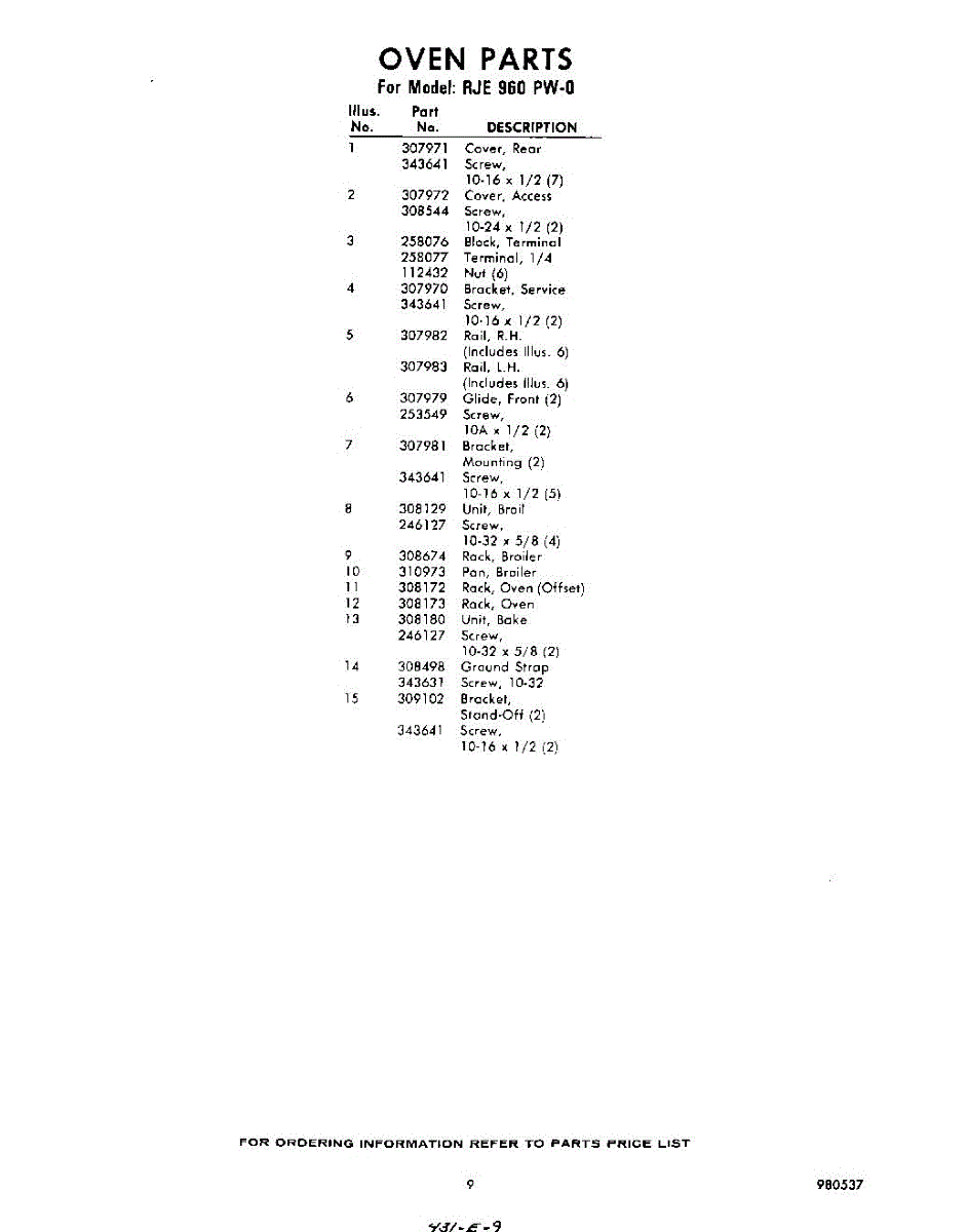 Parts for Whirlpool RJE960PW0: 09 - Section Parts
