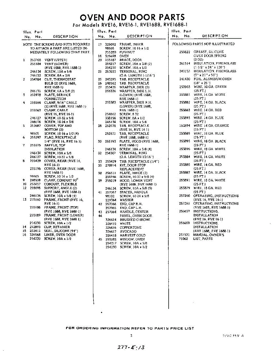 Parts for RVE16881