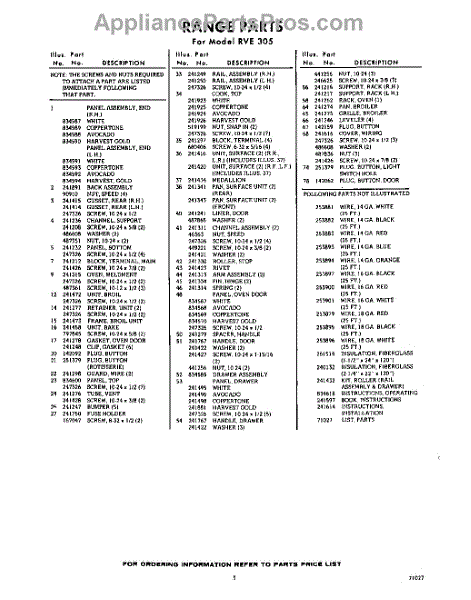 Parts for Whirlpool RVE305: 03 - Section Parts