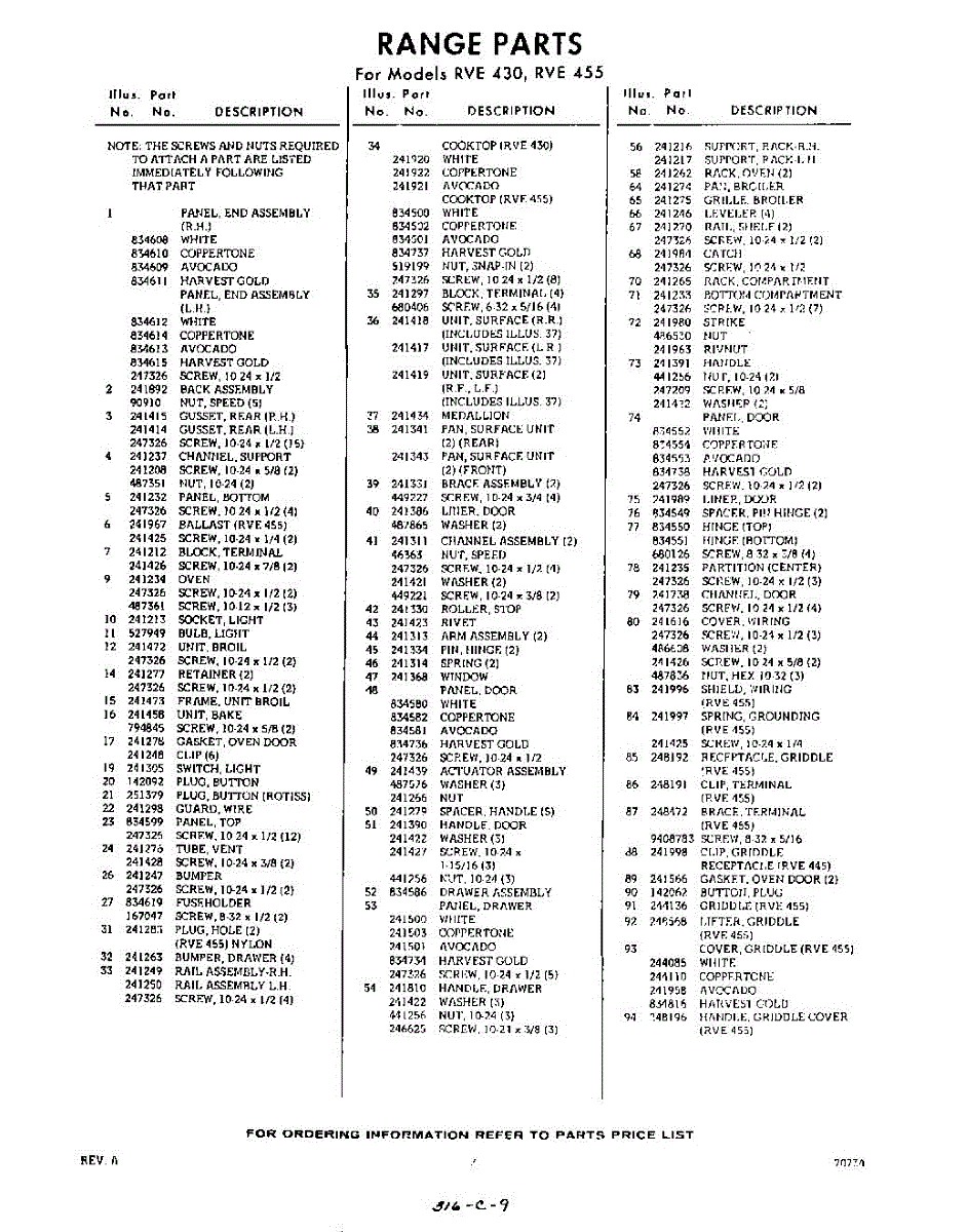 Parts for RVE4550