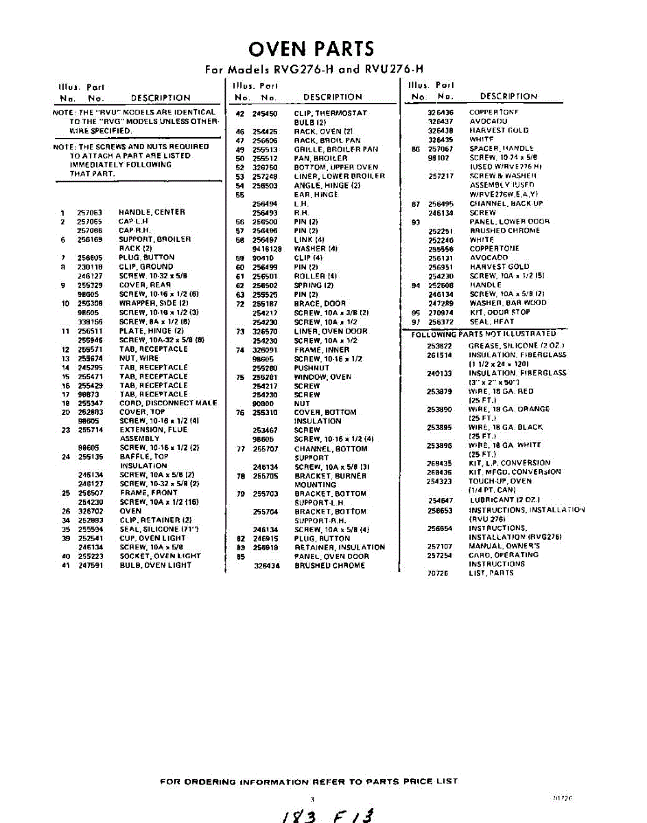 Parts for Whirlpool RVG276W: 03 - Section Parts