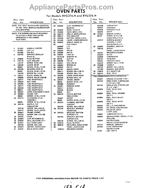 Parts for RVU276W