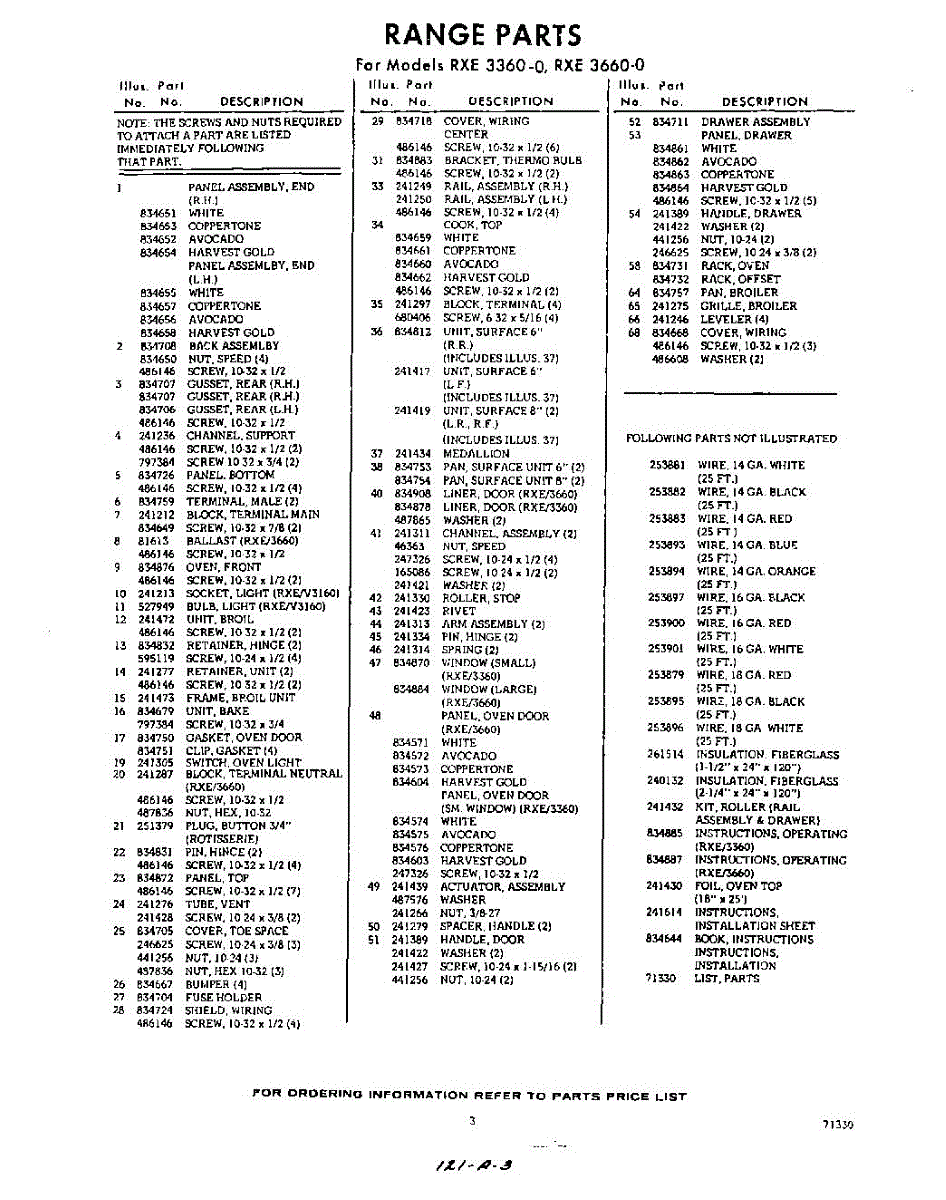 Parts for Whirlpool RXE3660: 03 - Section Parts