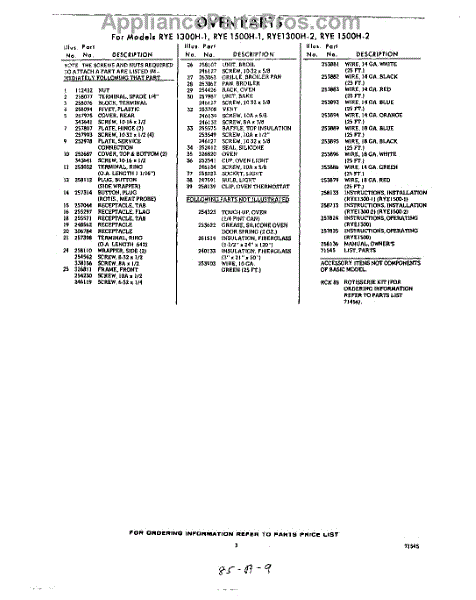 Parts for Whirlpool RYE1300W2: 03 - Section Parts