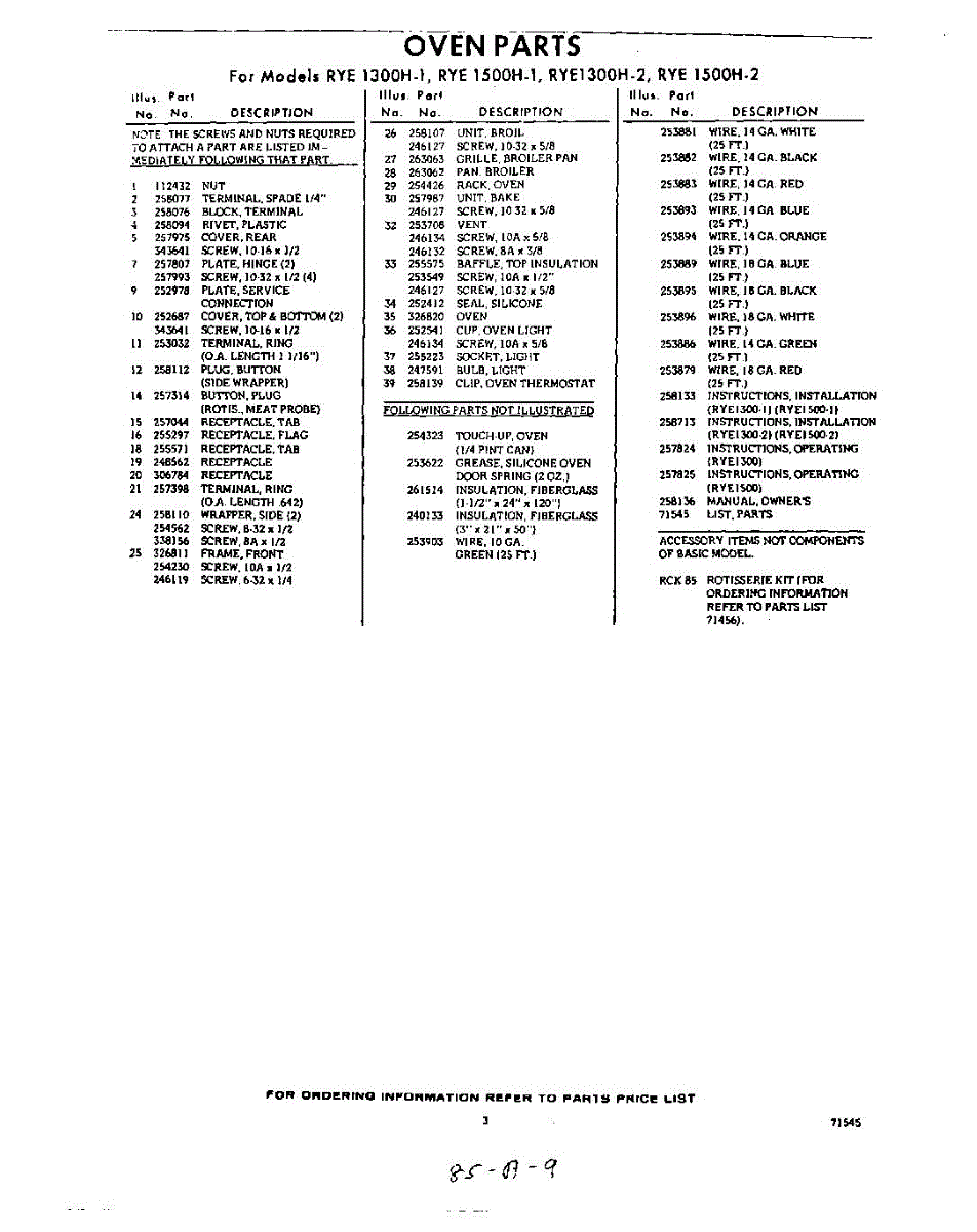 Parts for RYE1300W2