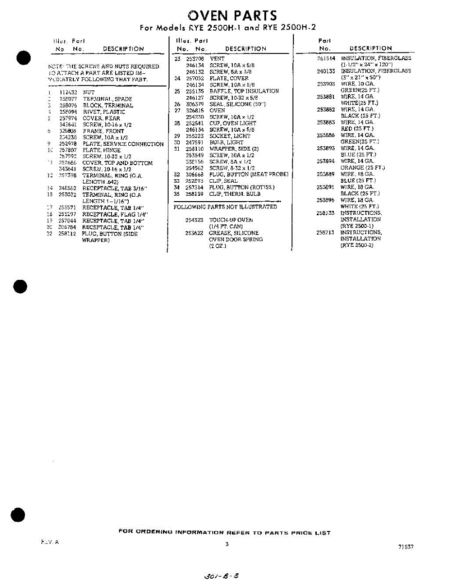 Parts for Whirlpool RYE2500W2: 03 - Section Parts
