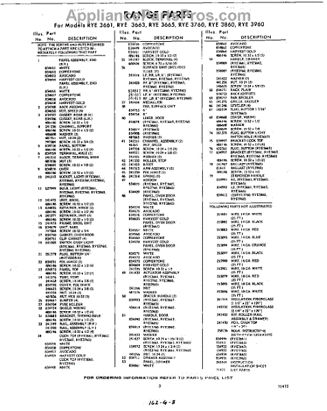 Parts for Whirlpool RYE3960: 03 - Section Parts