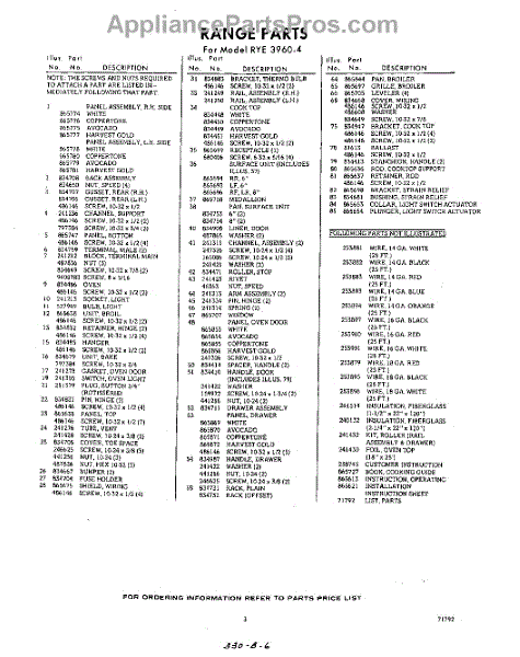Parts for Whirlpool RYE39604: 03 - Section Parts
