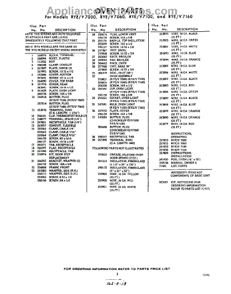 Parts for Whirlpool RYE7060W: 03 - Section Parts