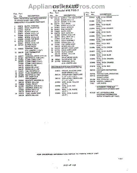 Parts for Whirlpool RYE7100W5: 03 - Section Parts