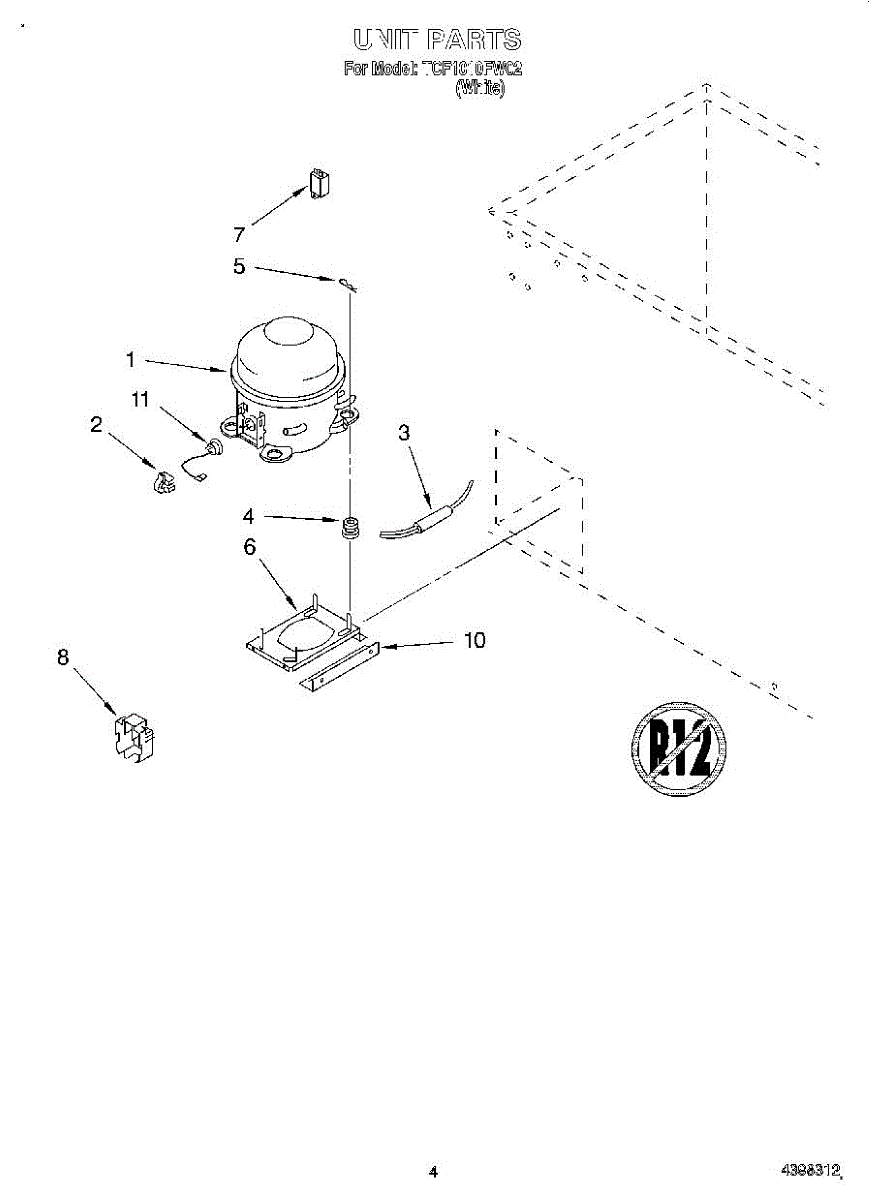 Parts for Whirlpool TCF1010FW02: 03 - Section Parts