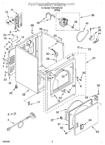 Note: If your original door seal was rubber, please note that the factory has changed this to a fiberglass seal. The factory also recommends adhesive part# WPY055980 to install.
