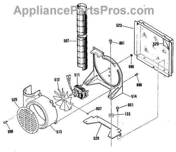 • Mounts and supports the blower wheel and motor assembly inside the dryer housing