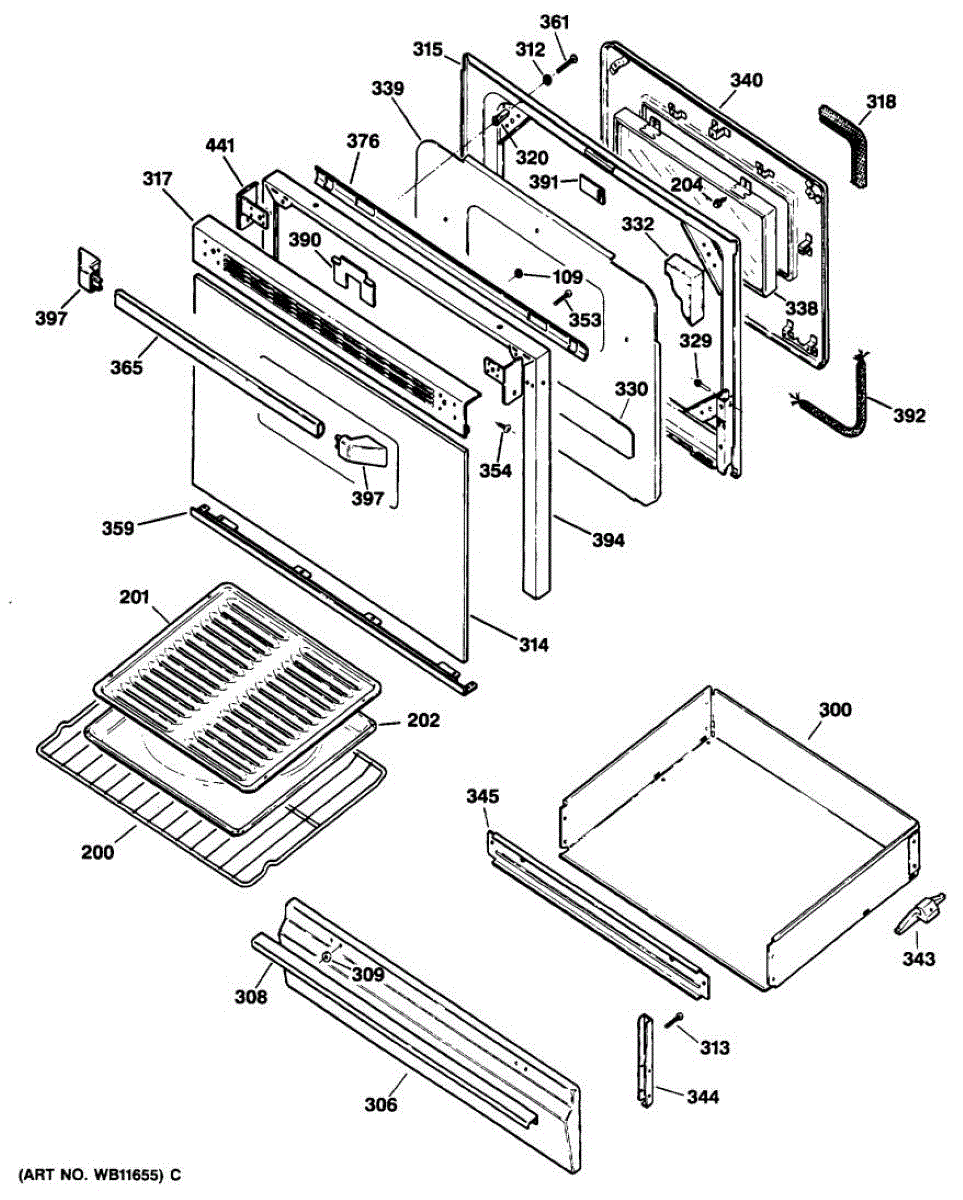 Door liner weld assembly for electric ranges. Replaces cracked, damaged, or broken door liner frames. Structural component that secures inner door panel.