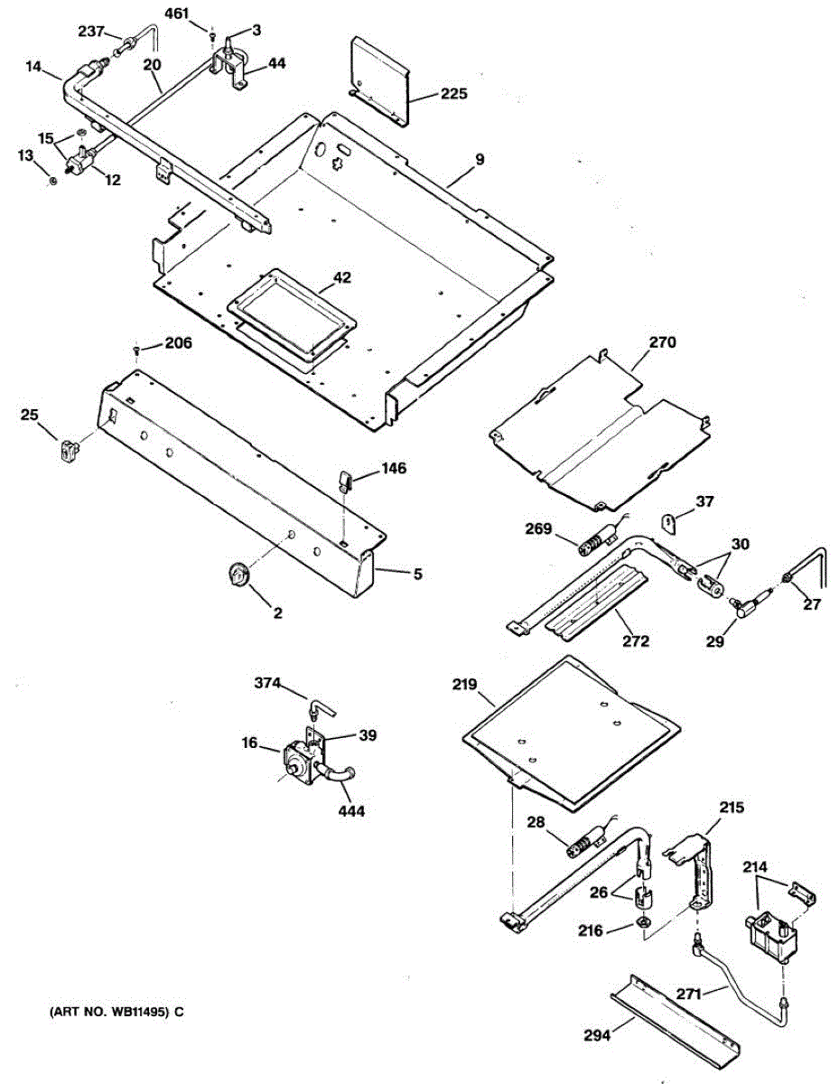 Broil shield for gas ranges. Mounts inside the oven cavity to protect components from direct heat. Replace if cracked, warped, or damaged.