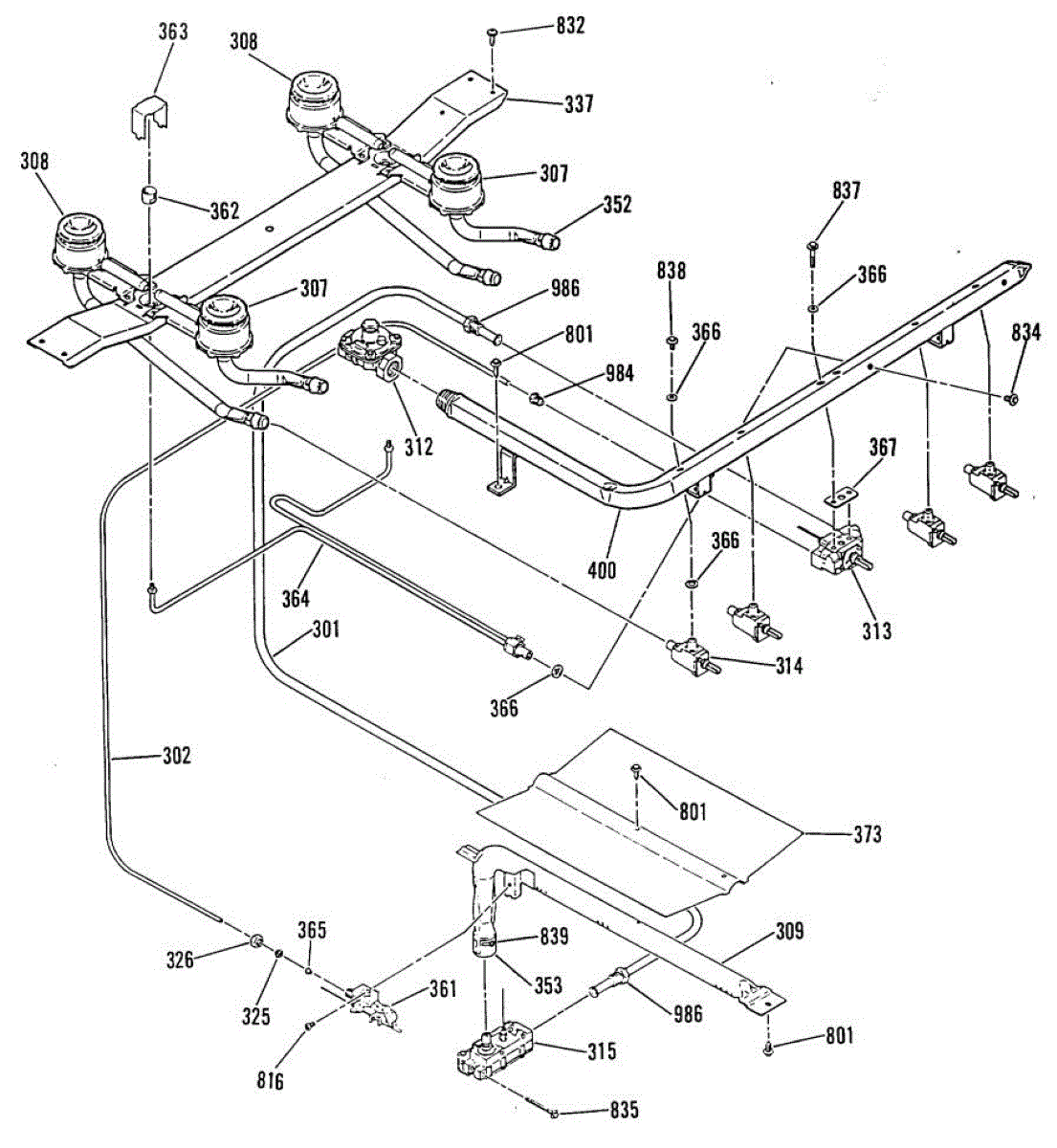 Hex head mounting screw for ranges and ovens. Secures elements, panels, and internal components. Replace if stripped, missing, or damaged during repairs.