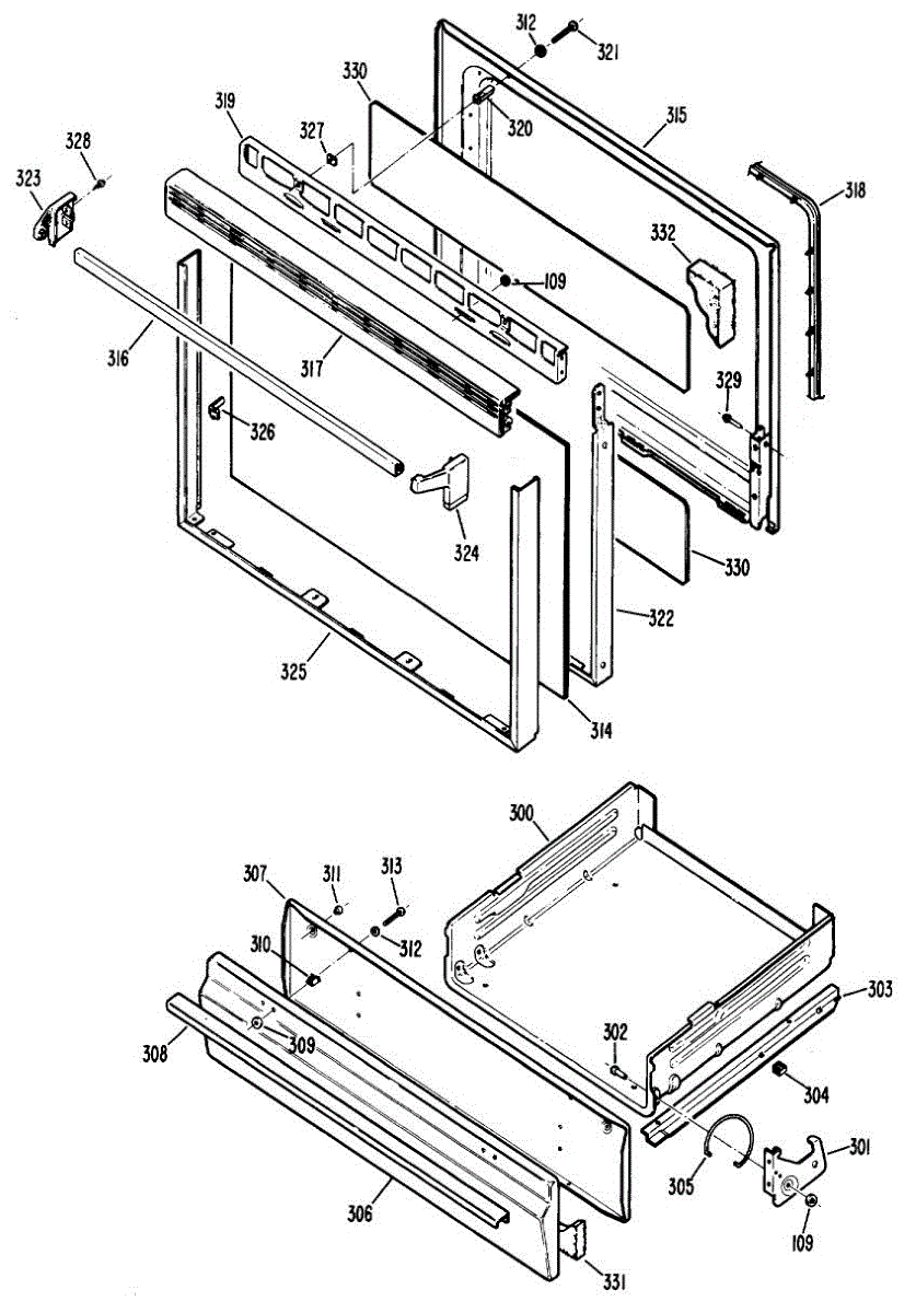 Broiler panel assembly for gas ranges. Replaces the structural weld assembly around the broiler compartment when cracked, damaged, or rusted.