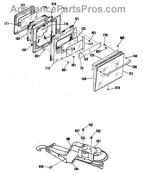 This oven door latch assembly secures the door during the self-clean cycle and reports lock status to the control. Replace a worn or failed latch to restore safe locking and reliable self-clean operation.