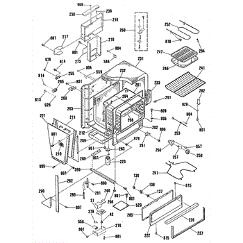 Left side oven door hinge provides smooth opening and closing operation. Replace if cracked, seized, worn, or binding. Mounts to oven cavity interior.
