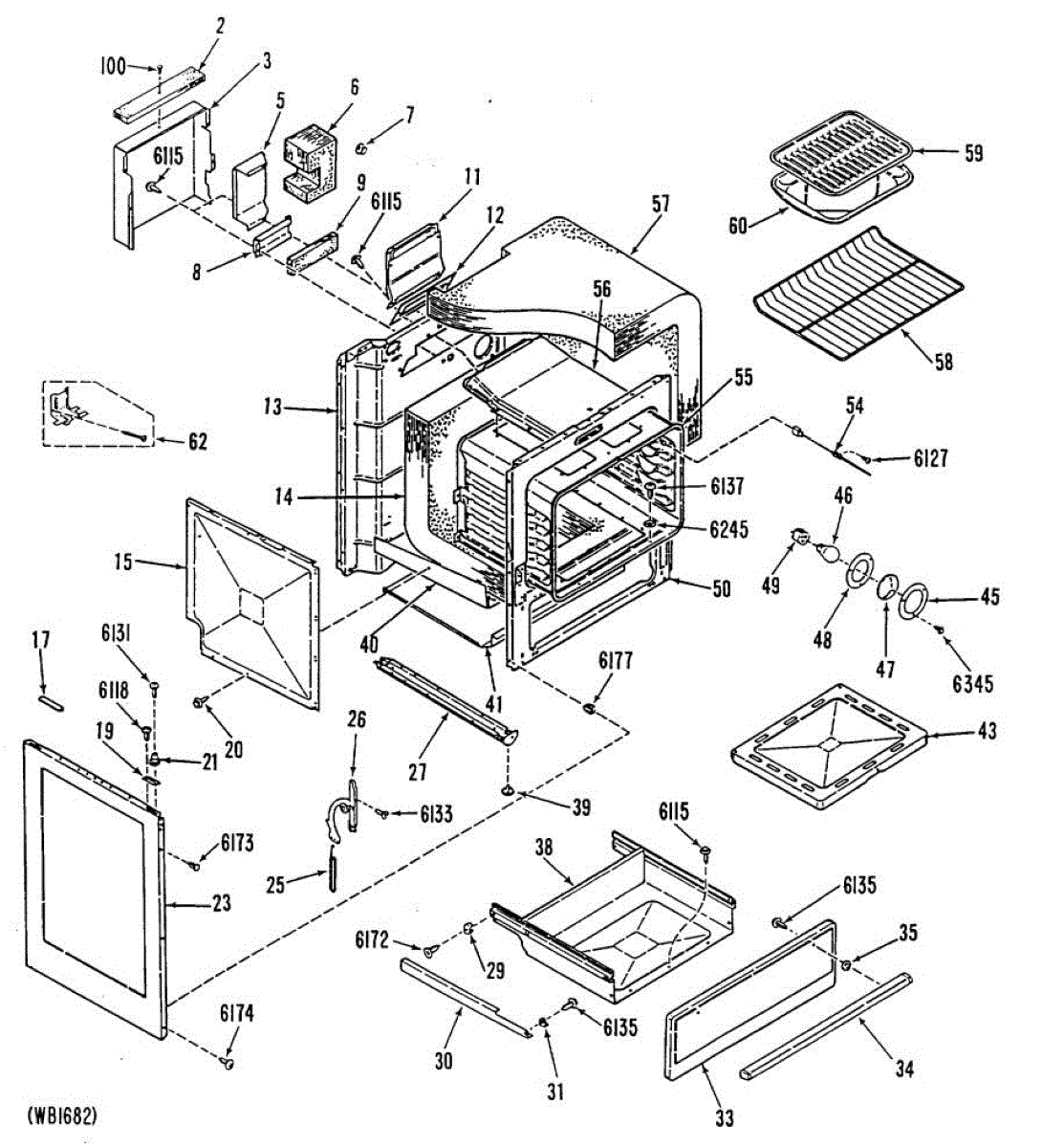 Oven cavity wrapper assembly that forms the outer cabinet structure. Replace if your wrapper is cracked, damaged, rusted, or missing components.