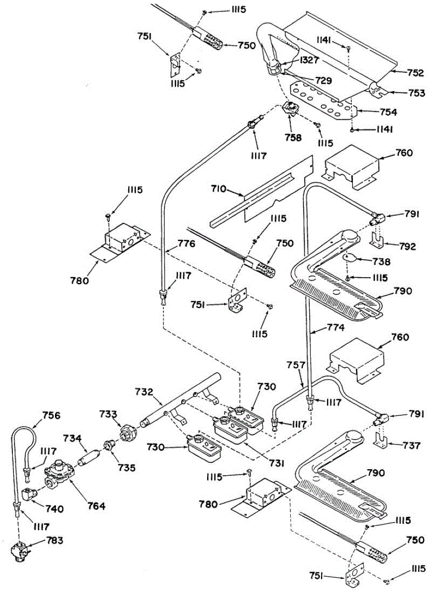 8-32 thread screw fastens panels and components inside ranges, ovens, and cooktops. Replace stripped, missing, or damaged screws to secure covers properly.