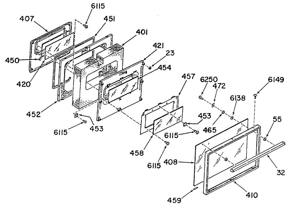 Intermediate glass panel for oven doors. Installs between inner and outer door glass. Replace if cracked, shattered, or broken to restore appearance.