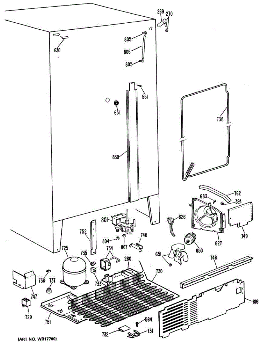 Supplies electrical power from wall outlet to refrigerator. Replace this cord if cut, frayed, overheated, or damaged to restore safe electrical connection.