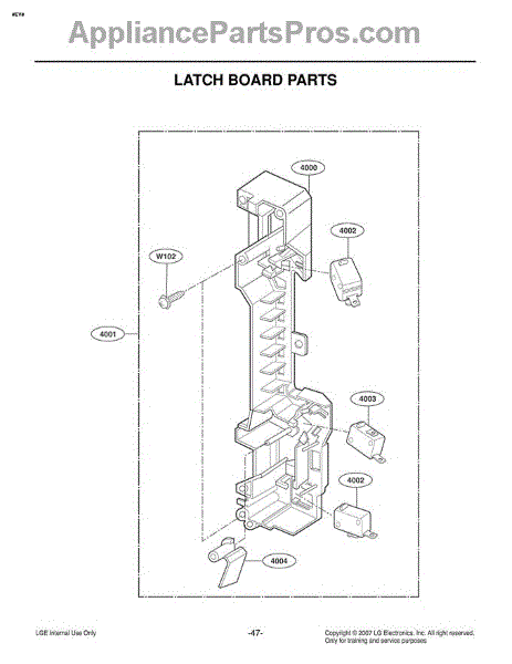 The Door Latch Housing and Interlock Switch Assembly is an OEM replacement part for LG microwaves. It consists of the protective door latch housing casing along with the two-door switches and interlock switch. The interlock switch prevents microwave energy from being generated inside the oven when the door is open. It shuts off all power once a faulty seal is detected between the door and cavity. Symptoms of issues can include: