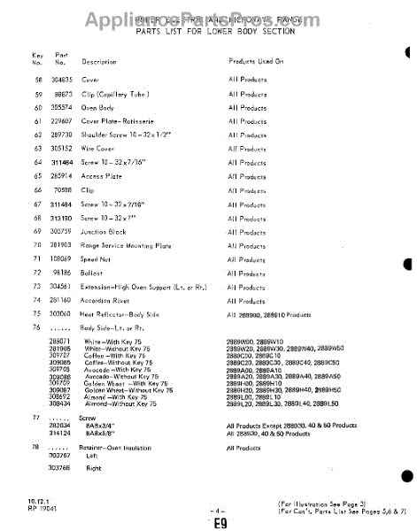 Parts for 2889W30