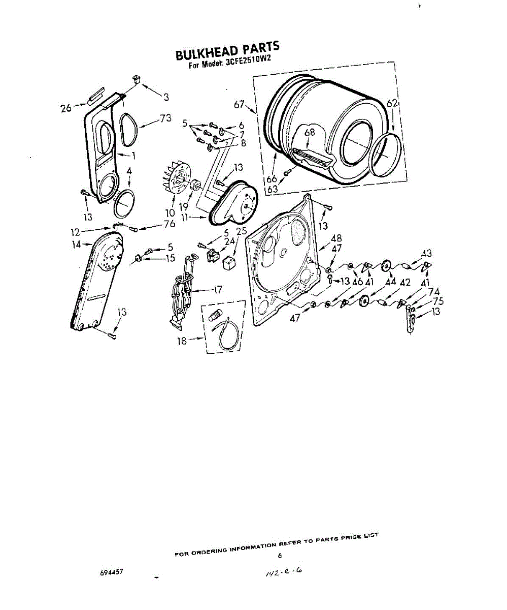 Replacement drum front bulkhead for dryers. Installs at the front of the drum assembly. Needed when original is cracked, damaged, or worn out.