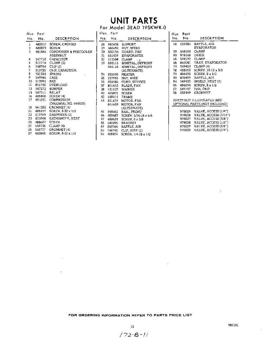 Parts for Whirlpool 3EAD19SKWR0: 11 - Section Parts