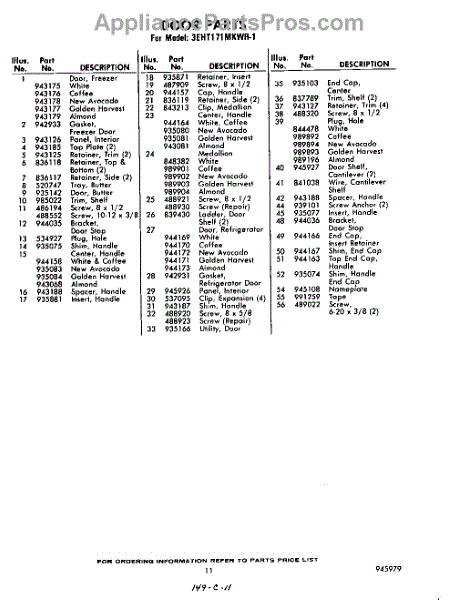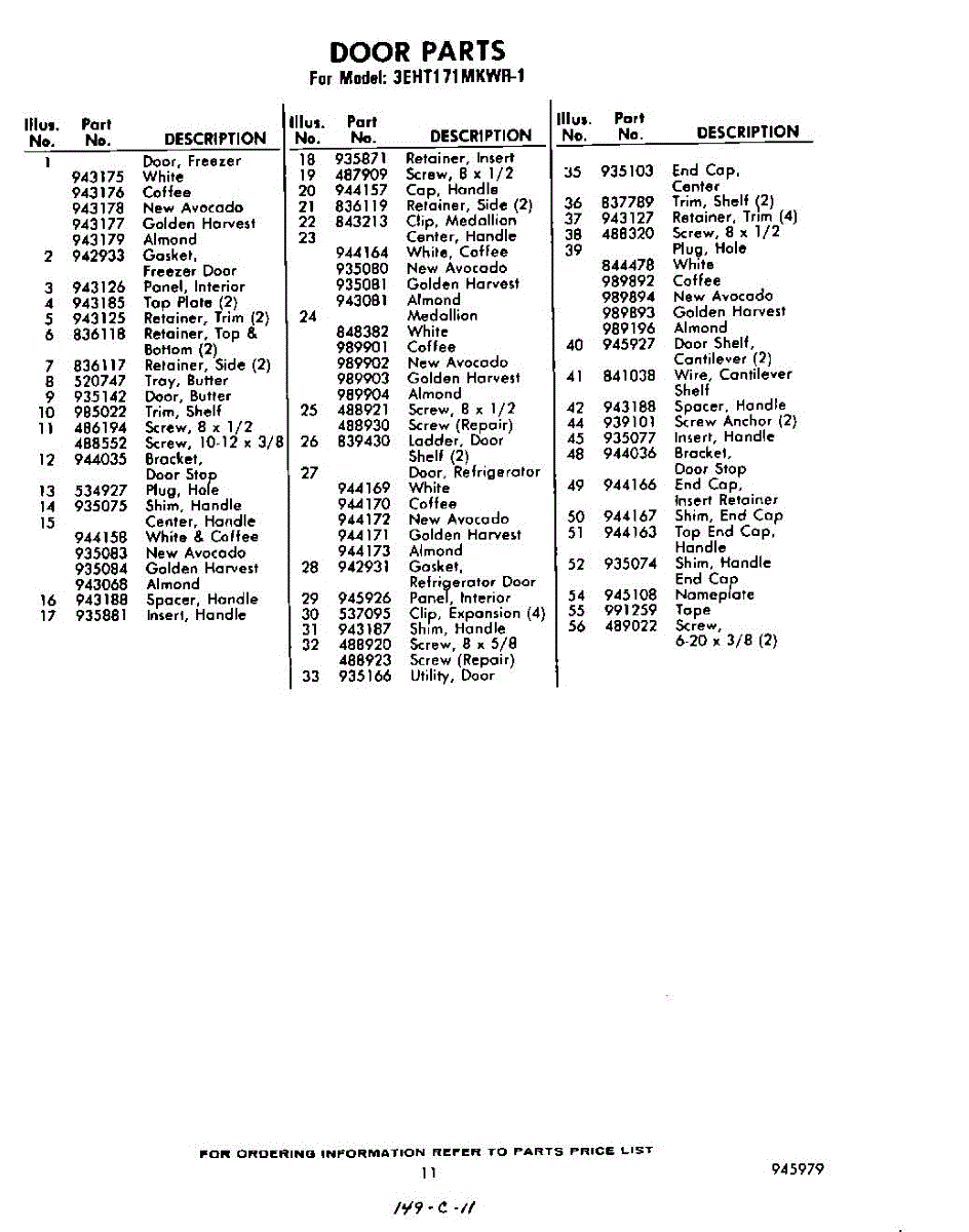 Parts for Whirlpool 3EHT171MKWR1: 11 - Section Parts