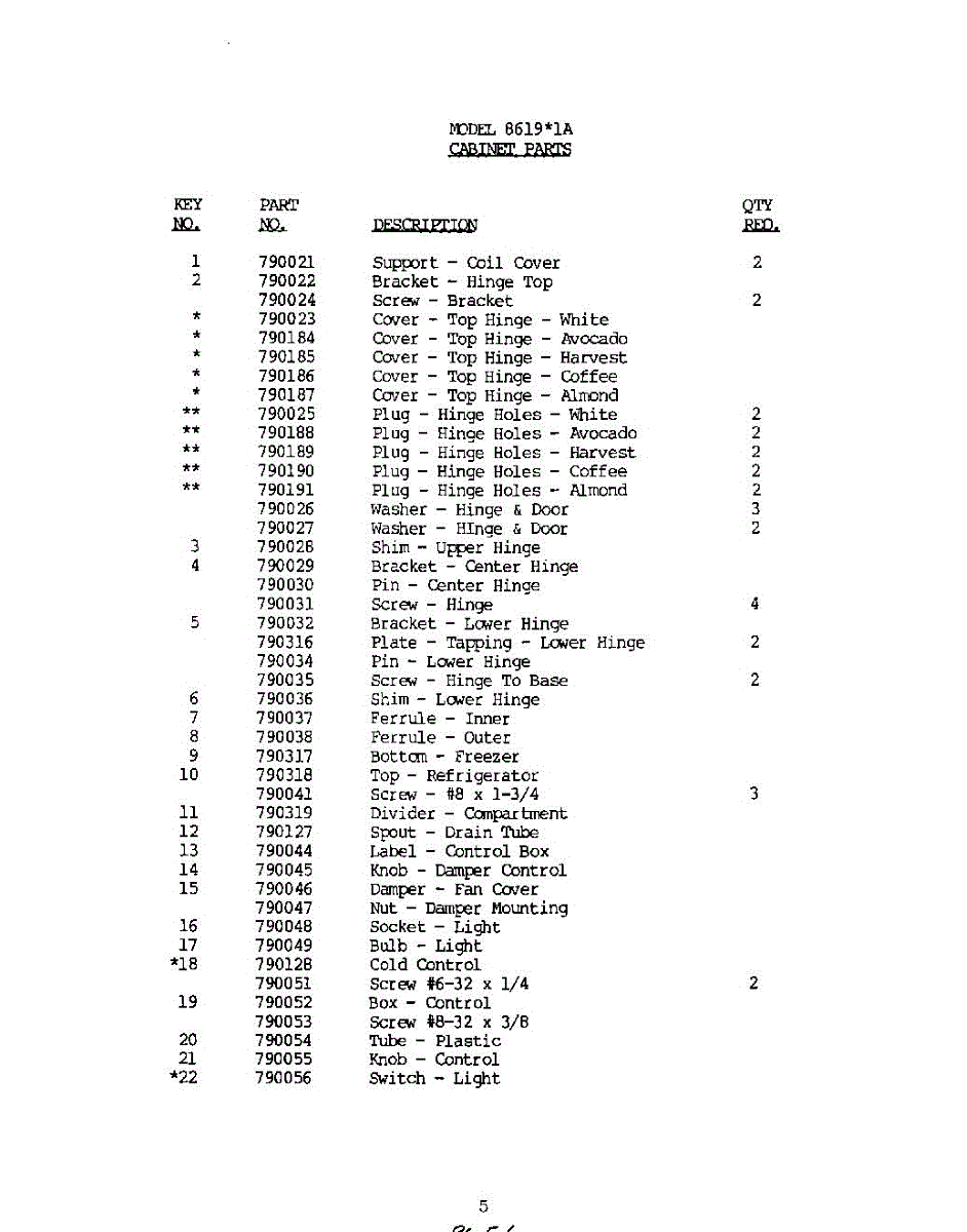 Parts for 8619W1A