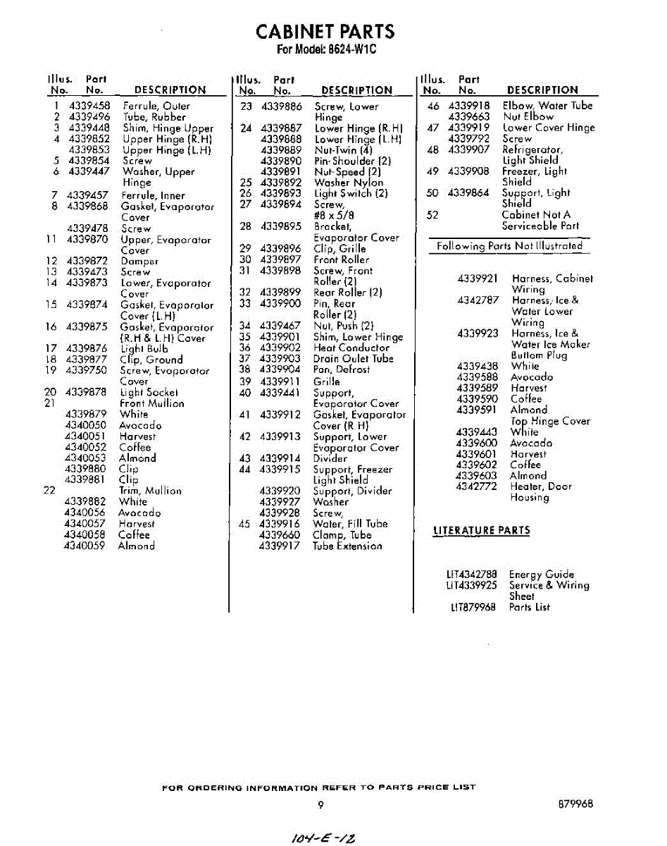 Parts for Whirlpool 8624W1C: 09 - Section Parts