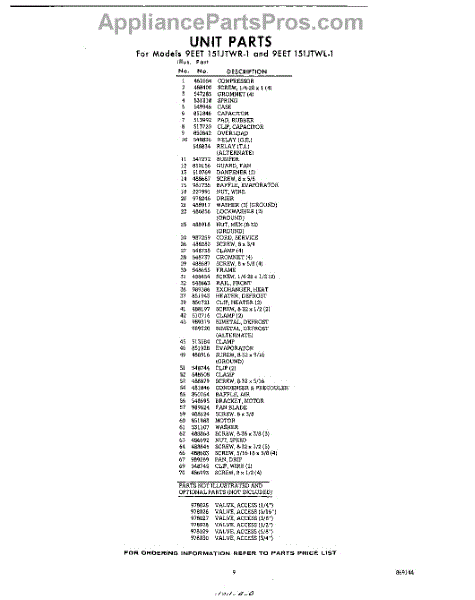 Parts for 9EET151JTWR1