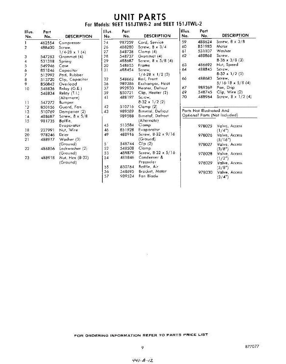 Parts for 9EET151JTWR2