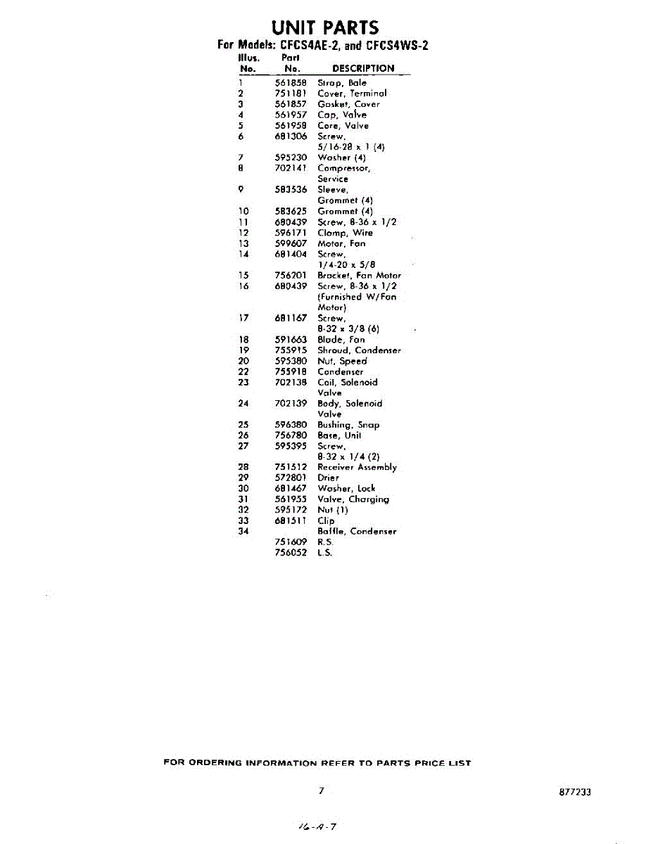 Parts for CFCS4WE2