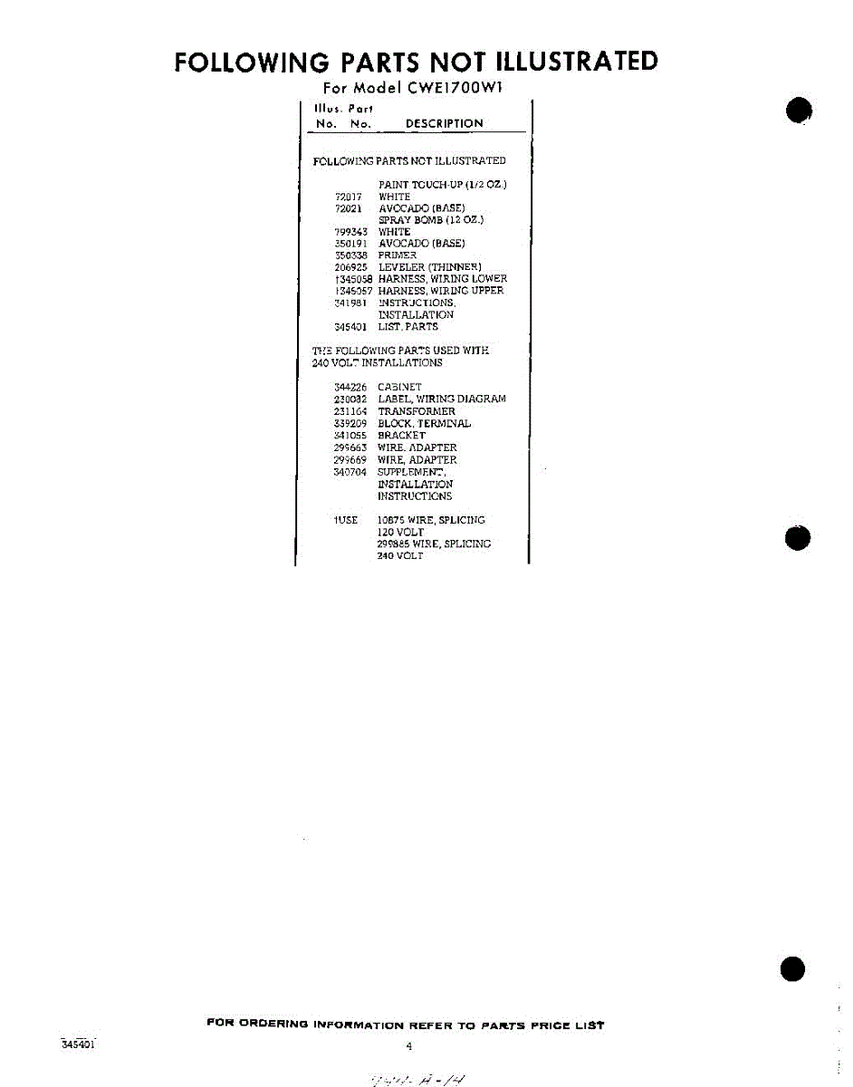 Parts for CWE1700W1