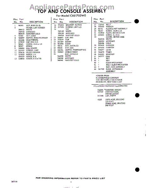 Parts for Whirlpool CXE1700W0: 04 - Section Parts