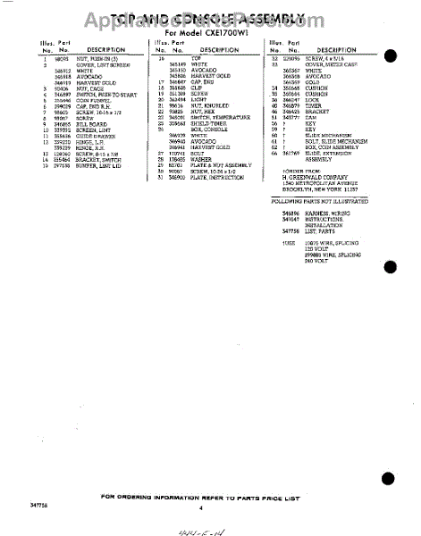 Parts for Whirlpool CXE1700W1: 04 - Section Parts