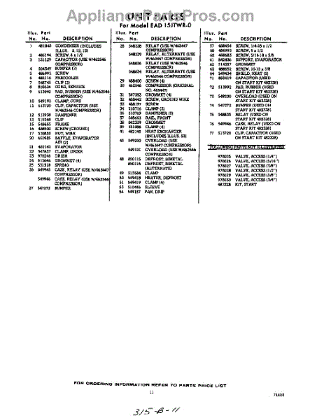 Parts for Whirlpool EAD15JTWR0: 11 - Section Parts