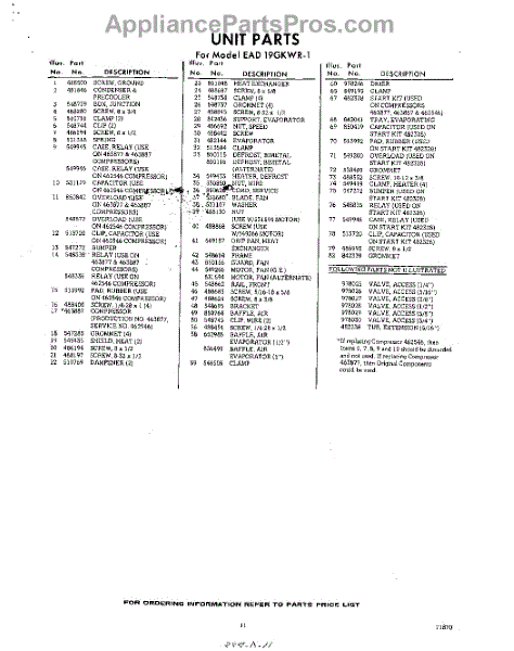 Parts for Whirlpool EAD19GKWR1: 11 - Section Parts
