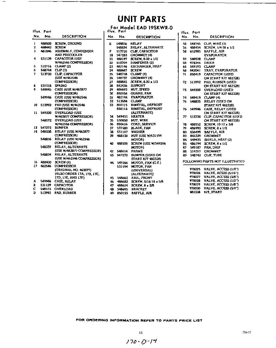 Parts for EAD19SKWR0