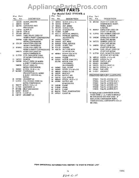 Parts for Whirlpool EAD19VKWR4: 11 - Section Parts