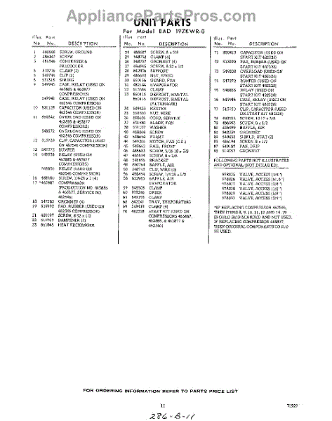 Parts for Whirlpool EAD19ZKWR0: 11 - Section Parts