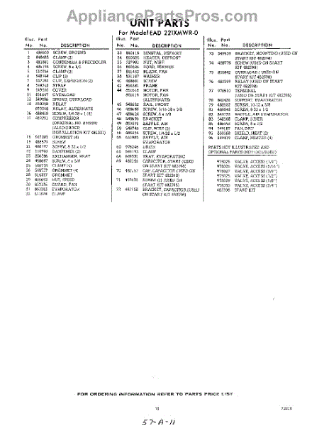 Parts for Whirlpool EAD221XMWR0: 11 - Section Parts