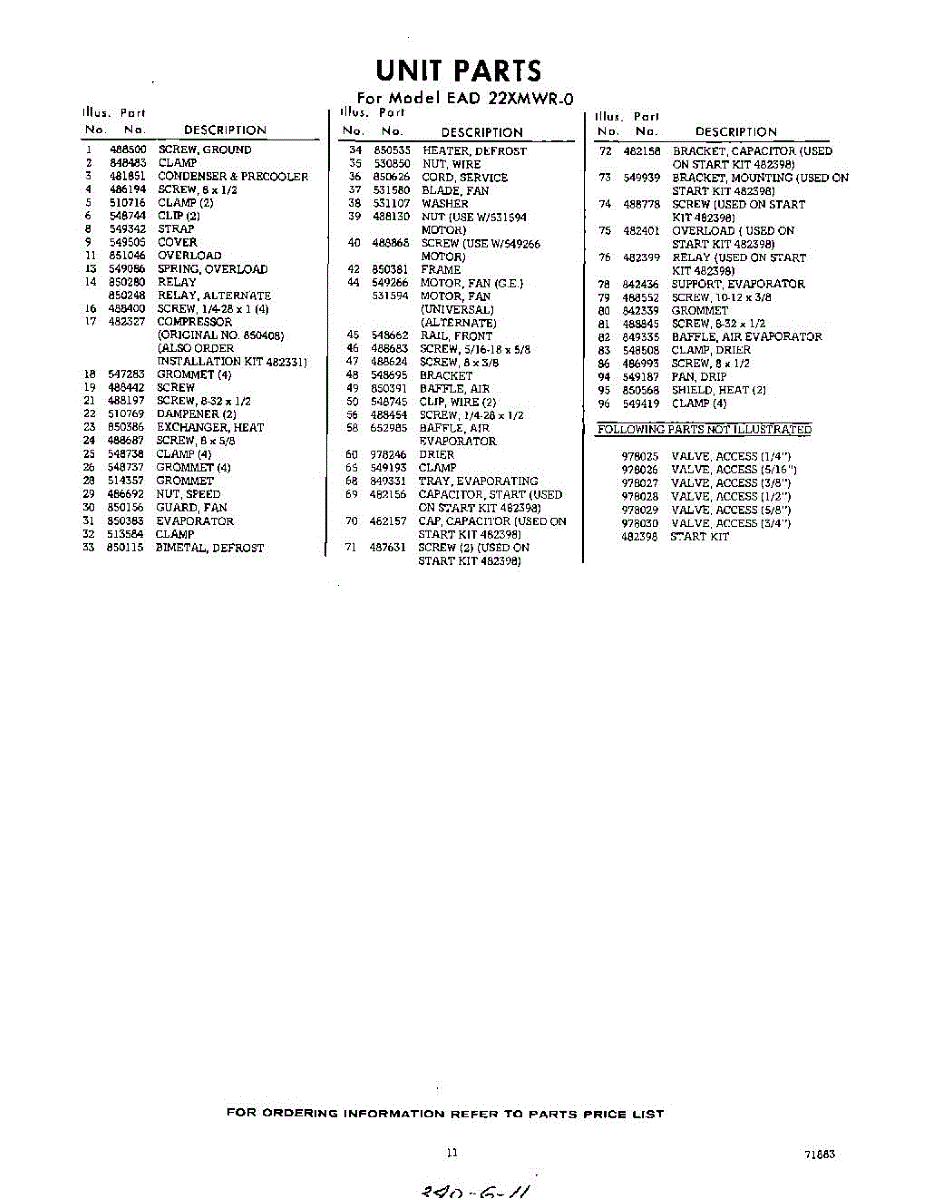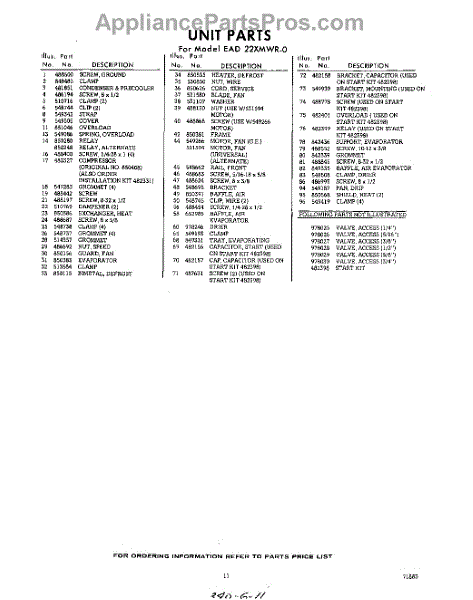 Parts for Whirlpool EAD22XMWR0: 11 - Section Parts