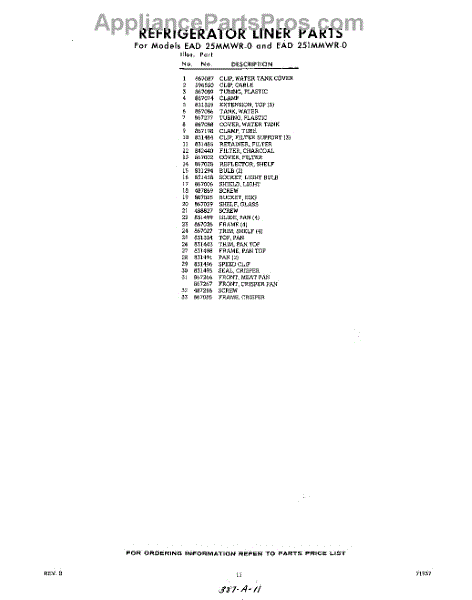 Parts for Whirlpool EAD251MMWR0: 11 - Section Parts