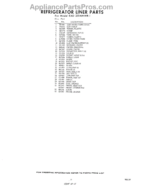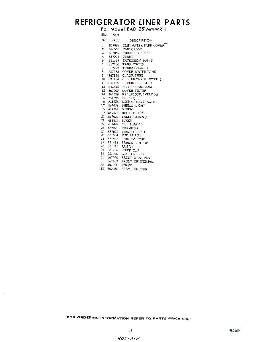 Parts for Whirlpool EAD251MMWR1: 11 - Section Parts